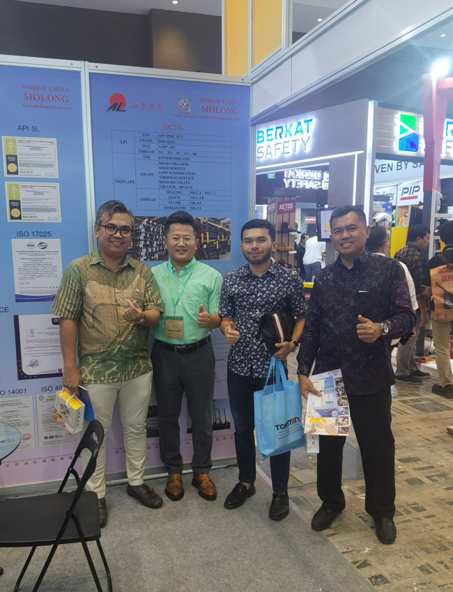 展會上,山東墨龍分管負(fù)責(zé)同志積極參見了印尼國家石油公司的相關(guān)領(lǐng)導(dǎo),詳細(xì)介紹了公司油管、油套管、抽油泵、抽油桿等主要產(chǎn)品,且圍繞公司產(chǎn)業(yè)布局、市場拓展等方面進(jìn)行了系統(tǒng)闡述。期間與同行業(yè)石油裝備公司及制造商針對市場和鉆采技術(shù)等做了深入交流,詳細(xì)了解了油氣勘探、開采、生產(chǎn)、運(yùn)輸、儲存等方面的專業(yè)知識。同時,通過自身宣傳讓更多的客戶進(jìn)一步了解了公司的生產(chǎn)狀況和產(chǎn)品內(nèi)容,更好地打造公司國際知名度。